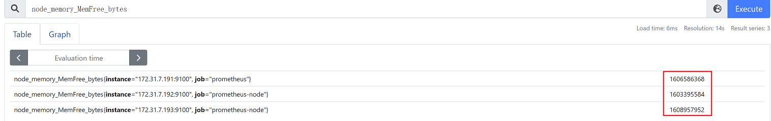 在prometheus控制台查询node_memory_MemFree_bytes