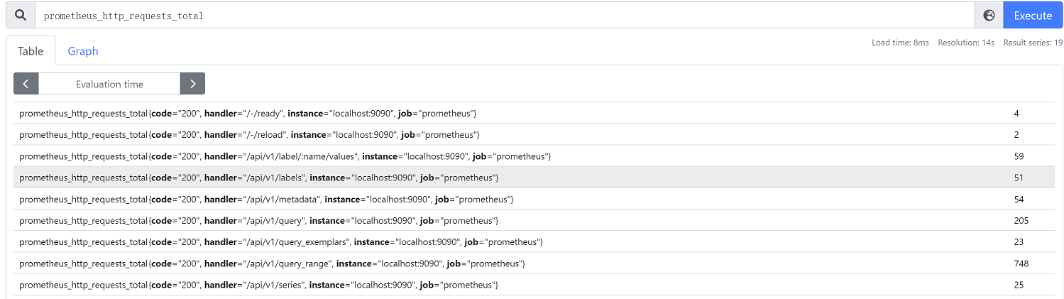 在prometheus控制台查询prometheus_http_requests_total