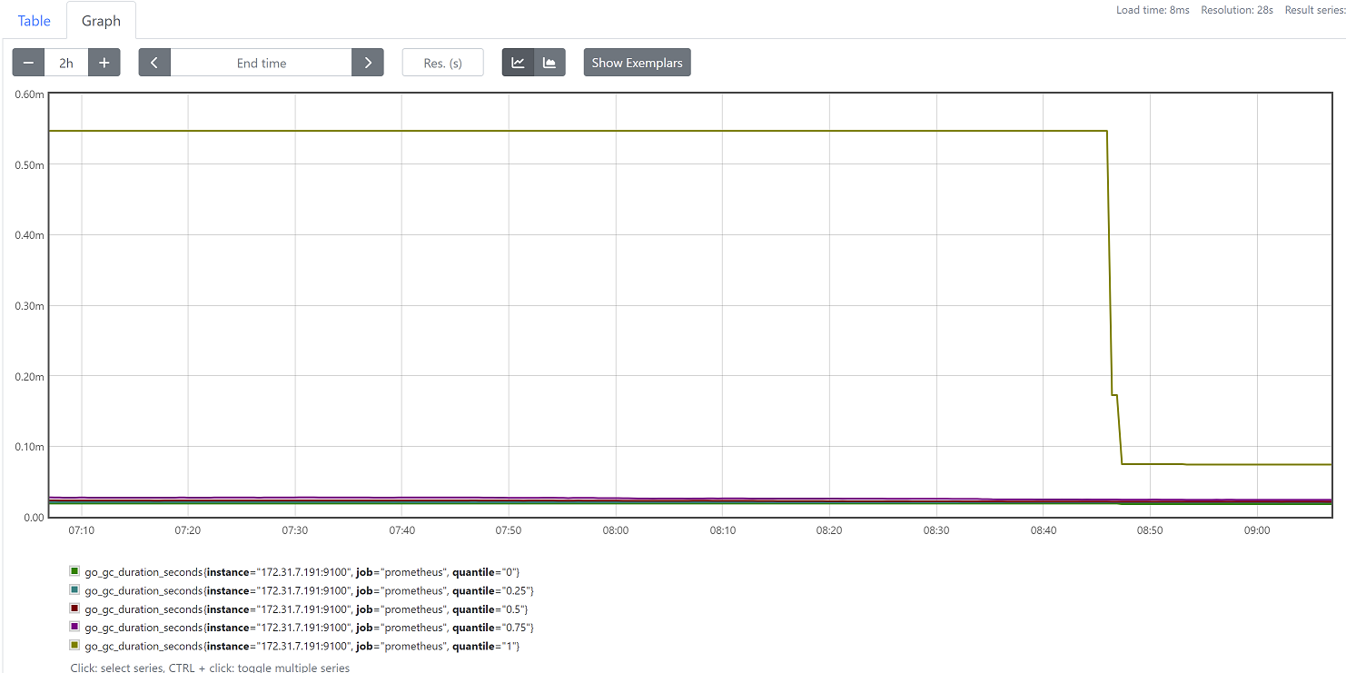 注意:prometheus每隔15秒抓取一次数据,一分钟会抓取4此,如果查询5分钟内的数据,那么会返回5*(60/15)=20个数据的值