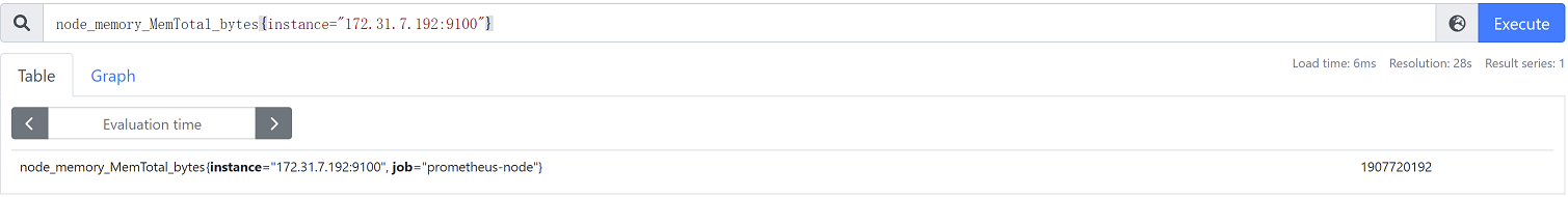 node_memory_MemTotal_bytes{instance="172.31.7.192:9100"} #基于标签查询指定节点的总内存