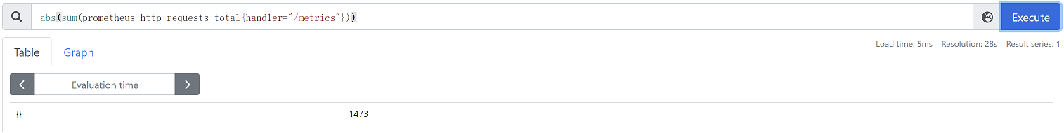 abs(sum(prometheus_http_requests_total{handler="/metrics"})) #返回请求prometheus监控url为/metrics的总次数的值