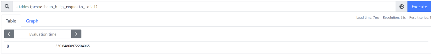 stddev(prometheus_http_requests_total) #得出的值越大,说明差异越大,表示数据波动大,不稳定