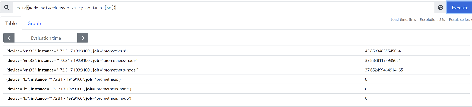 rate(node_network_receive_bytes_total[5m]) #取出5分钟的数据,计算每秒的平均数