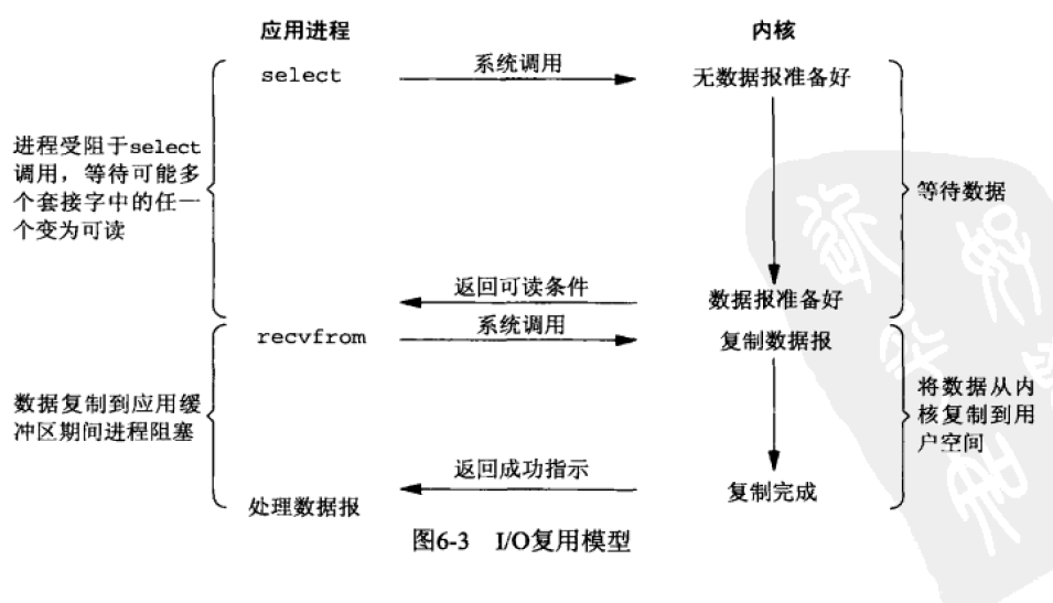 • 从流程上来看,使用select函数进行IO请求和同步阻塞模型没有太大的区别,甚至还多了添加监视IO,以及调用select函数的额外操作,效率更差。并且阻塞了两次,但是第一次阻塞在select上时,select可以监控多个IO上是否已有IO操作准备就绪,即可达到在同一个线程内同时处理多个IO请求的目的。而不像阻塞IO那种,一次只能监控一个IO