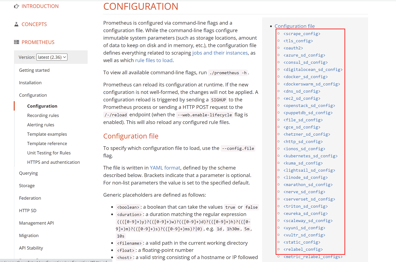官网链接:https://prometheus.io/docs/prometheus/latest/configuration/configuration/#kubernetes_sd_config