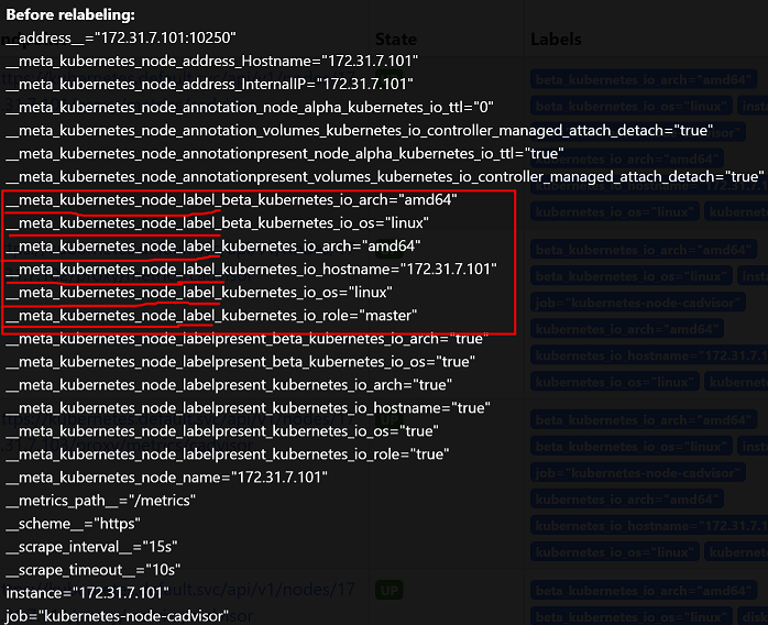 __address__:以<host>:<port> 格式显示目标 targets 的地址,如172.31.7.111:10250