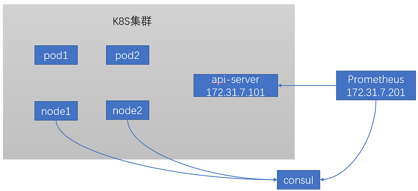 Prometheus 一直监视 consul 服务,当发现在 consul中注册的服务有变化,prometheus 就会自动监控到所有注册到 consul 中的目标资源。