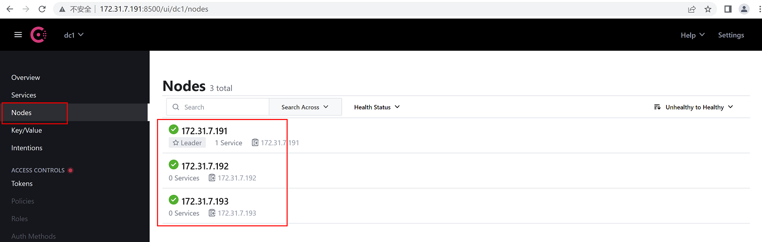(1)在consul集群node1节点172.31.7.191上执行命令: