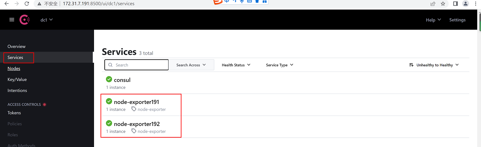 curl -X PUT -d '{"id": "node-exporter193","name": "node-exporter193","address":"172.31.7.193","port":9100,"tags": ["node-exporter"],"checks": [{"http":"http://172.31.7.193:9100/","interval": "5s"}]}' http://172.31.7.191:8500/v1/agent/service/register