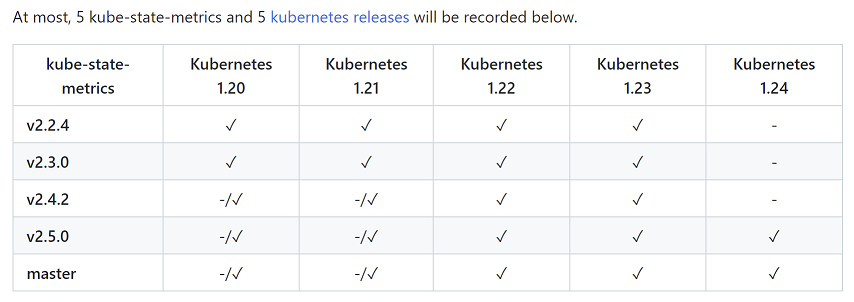 目前kube-state-metrics的版本兼容性: