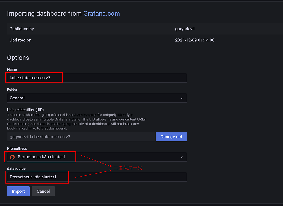 在官网找到合适的kube-state-metrics模板导入grafana