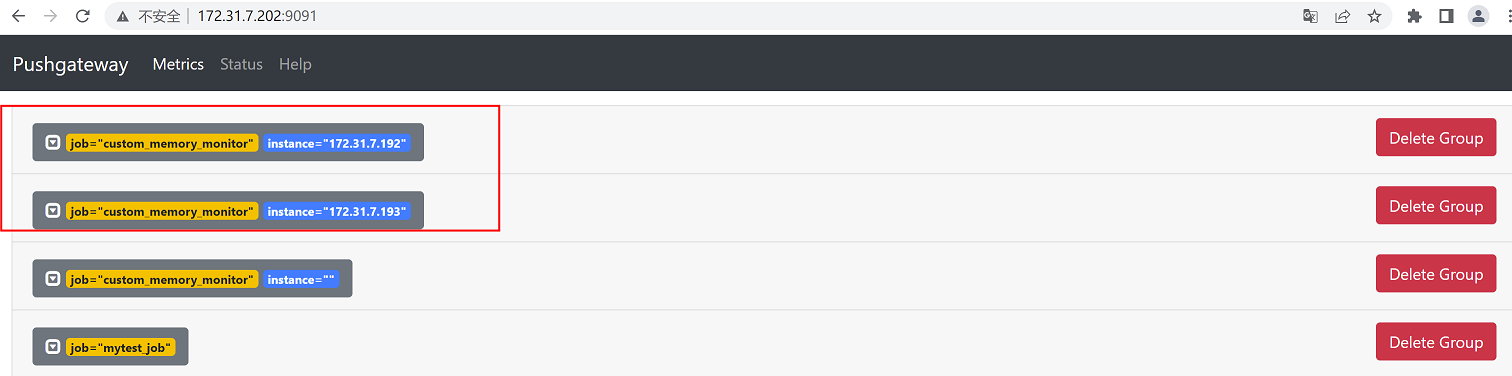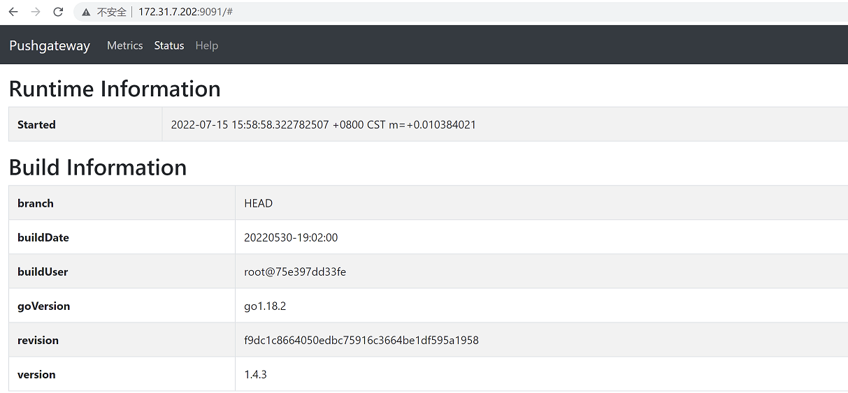 (1)访问pushgateway控制台:172.31.7.202:9091