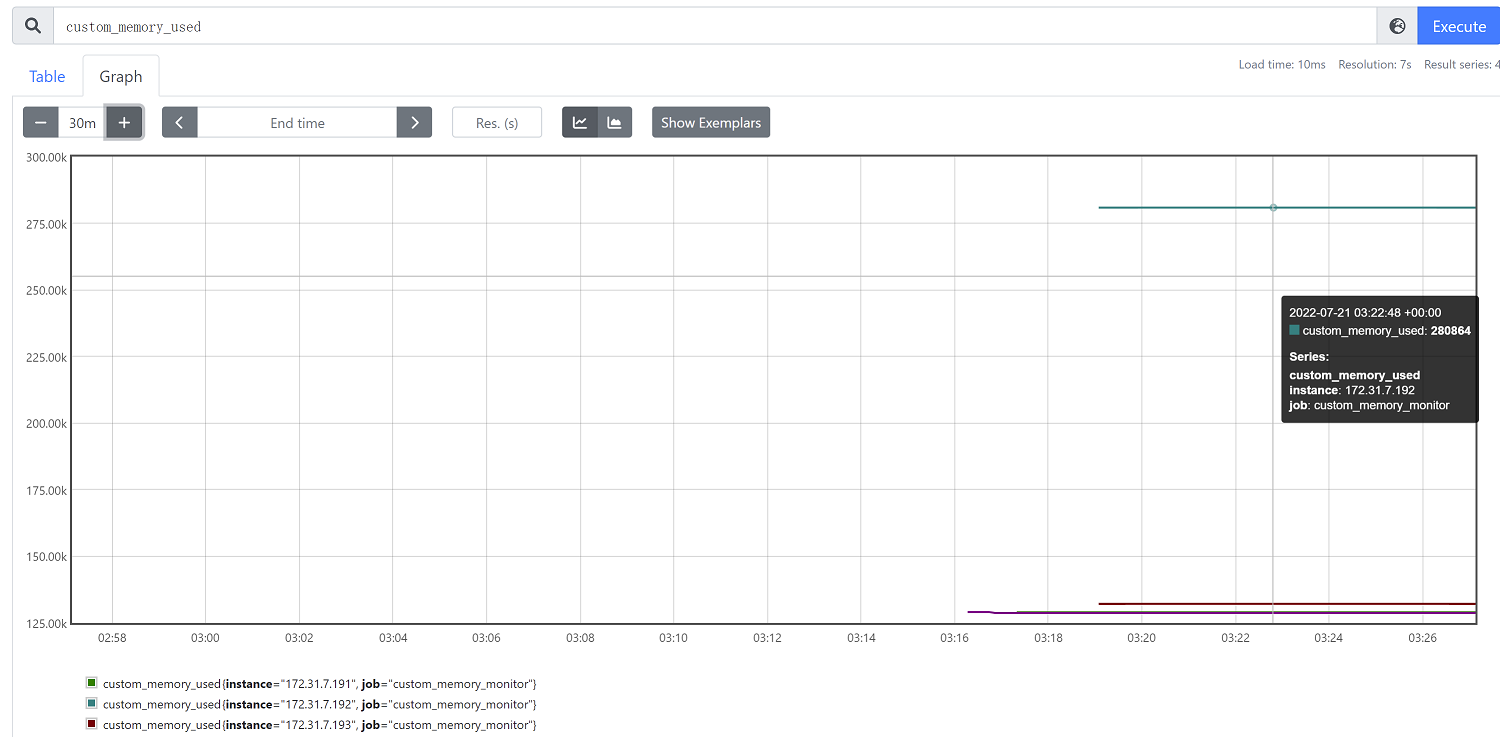 custom_memory_used数据(能看到三台主机的已用内存数据)