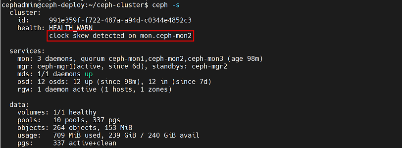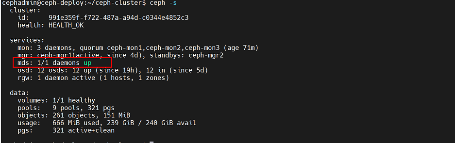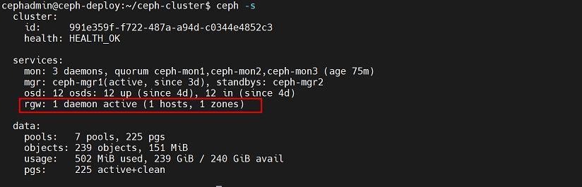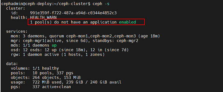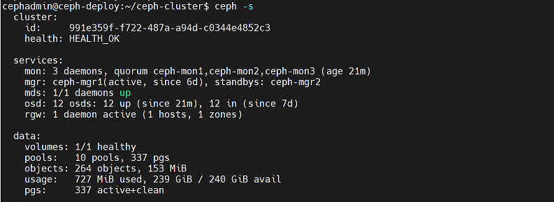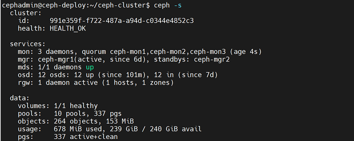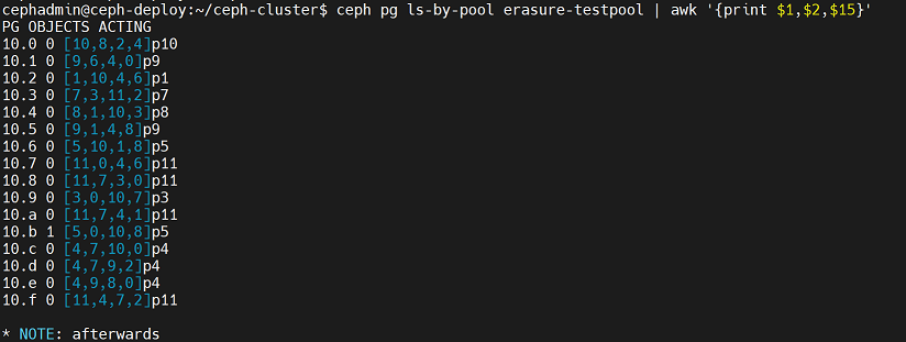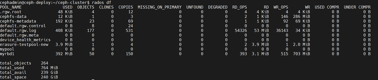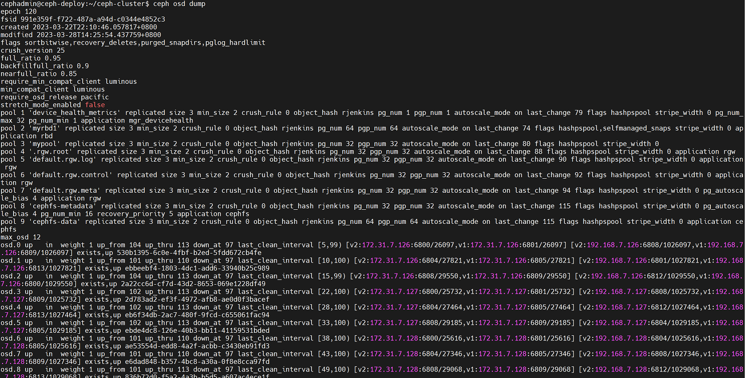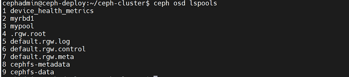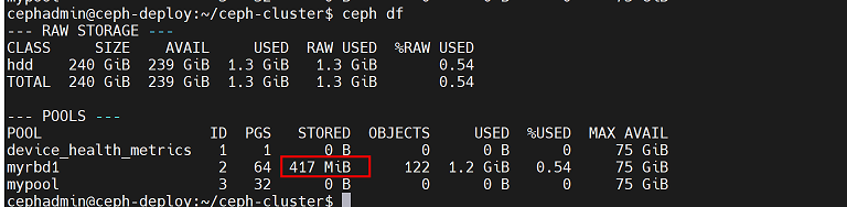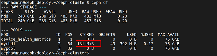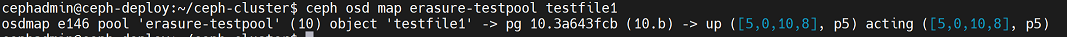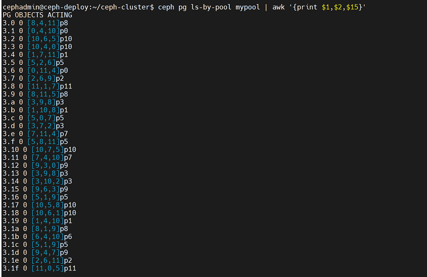 cephadmin@ceph-deploy:~/ceph-cluster$ rados -p mypool put testfile /etc/hosts