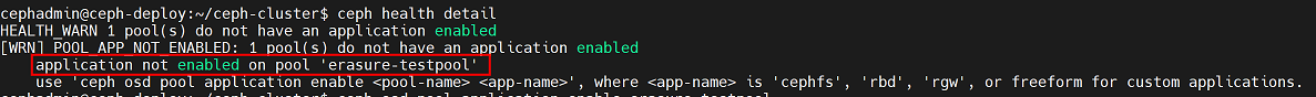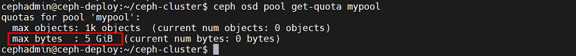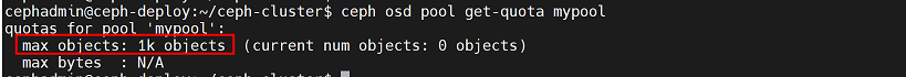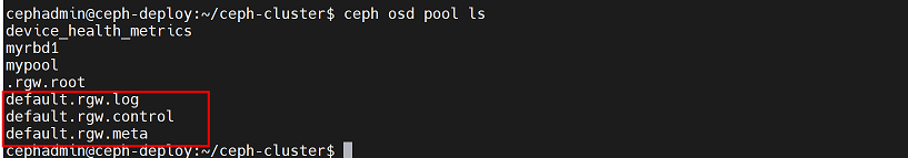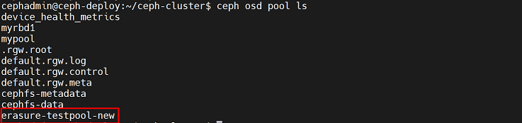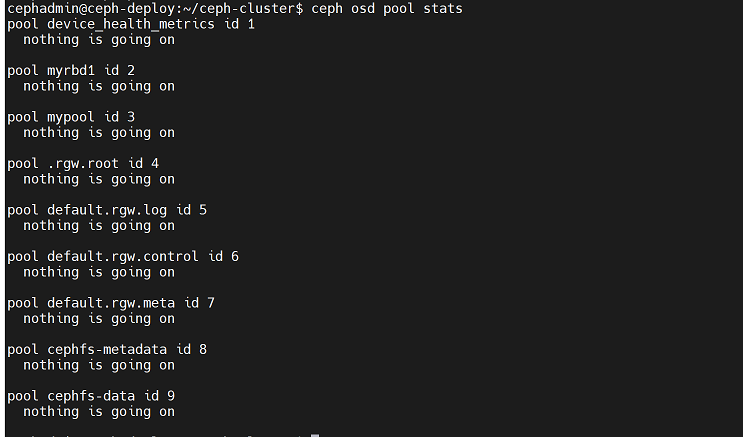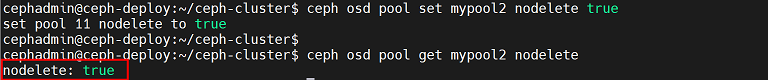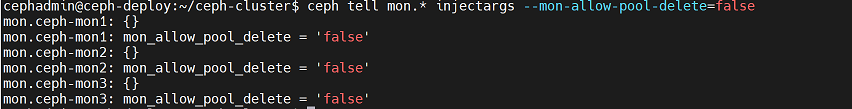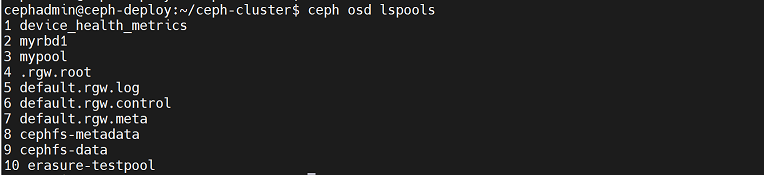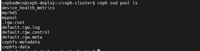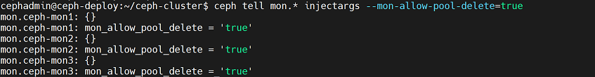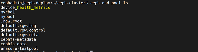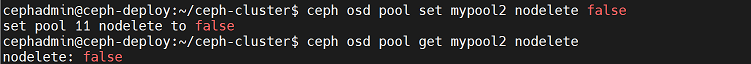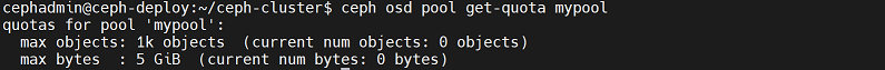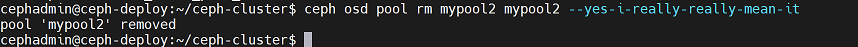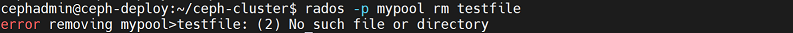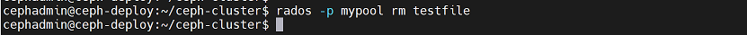 cephadmin@ceph-deploy:~/ceph-cluster$ rados -p mypool rm testfile