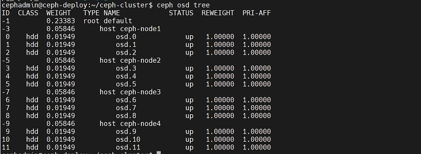 cd /home/cephadmin/ceph-cluster