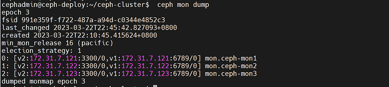 cephadmin@ceph-deploy:~/ceph-cluster$ scp ceph.conf ceph.client.admin.keyring root@172.31.7.151:/etc/ceph/