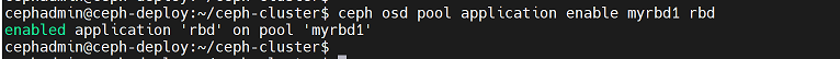 $ ceph osd pool application enable myrbd1 rbd #对存储池启用 RBD 功能