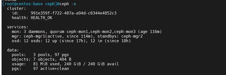 [root@centos-base ~]# ceph -s