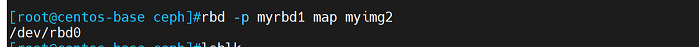[root@centos-base ~]# rbd -p myrbd1 map myimg2 #映射myimg2块设备