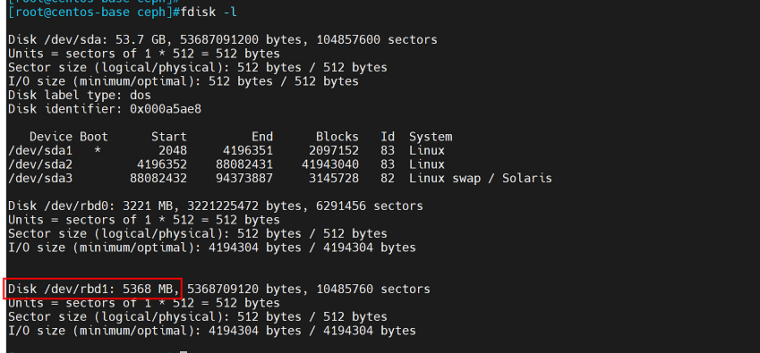 可以看到/dev/rbd1已经成功映射到本地