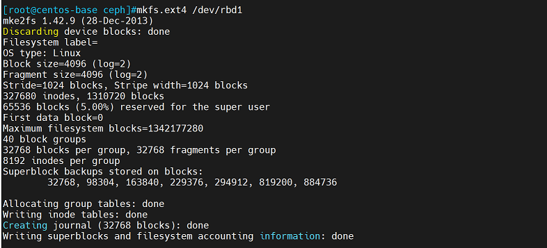 [root@centos-base ~]# mkfs.ext4 /dev/rbd1