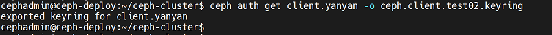 cephadmin@ceph-deploy:~/ceph-cluster$ ceph auth get client.test02 -o ceph.client.test02.keyring