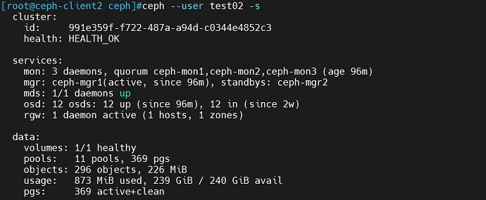 [root@ceph-client2 ceph]# ceph --user test02 -s