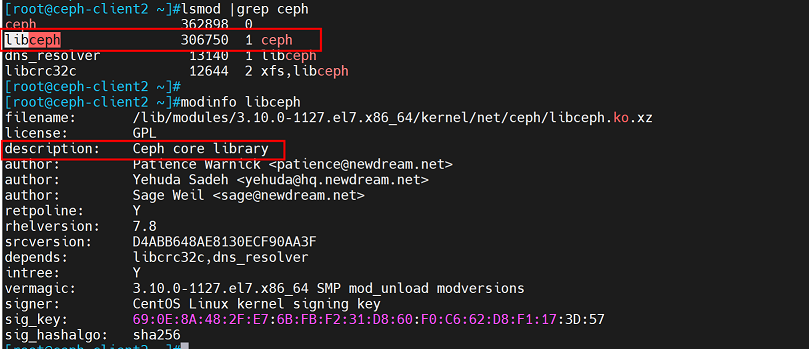 [root@ceph-client2 ~]#lsmod |grep ceph