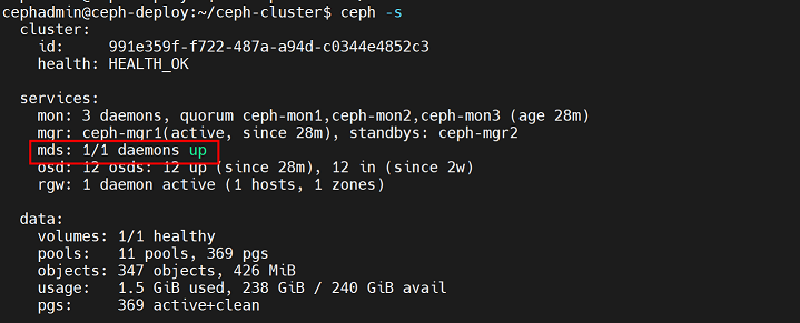 cephadmin@ceph-deploy:~/ceph-cluster$ ceph fs status