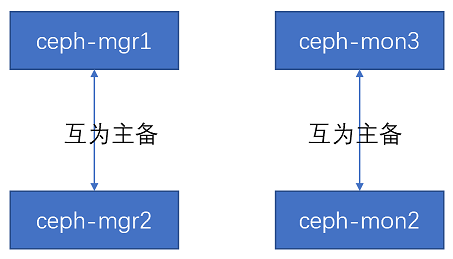 目前情况下,mgr1和mon3为主,在配置文件中指定其备节点分别是mgr2和mon2。除此之外,还指定了当mgr1和mon3为备节点时,它的主为mgr2和mon2,这样一来,主备节点绑定以后,无论两个节点的主备角色如何切换,都不会影响mds服务。(这样配置的原因是:mds服务重启以后,绑定的两个节点主备角色可能会发生变化)