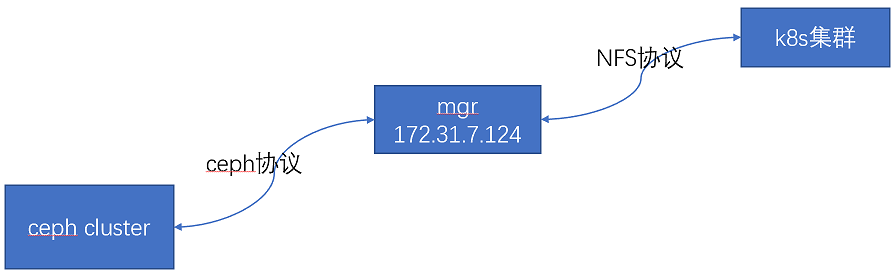 使用场景:老的集群使用的是nfs协议,修改集群配置比较麻烦,将cephfs转换为nfs,但这种方式只适合读写量较小的场景,其读写性能比ceph的读写性能差很多,因此推荐直接挂载cephfs