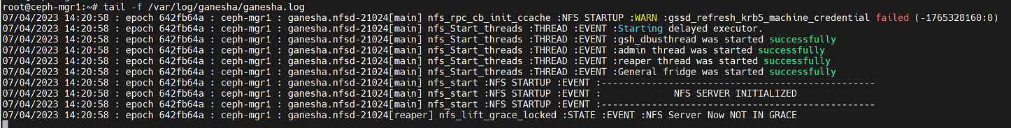 tail -f /var/log/ganesha/ganesha.log #没有报错,说明启动正常