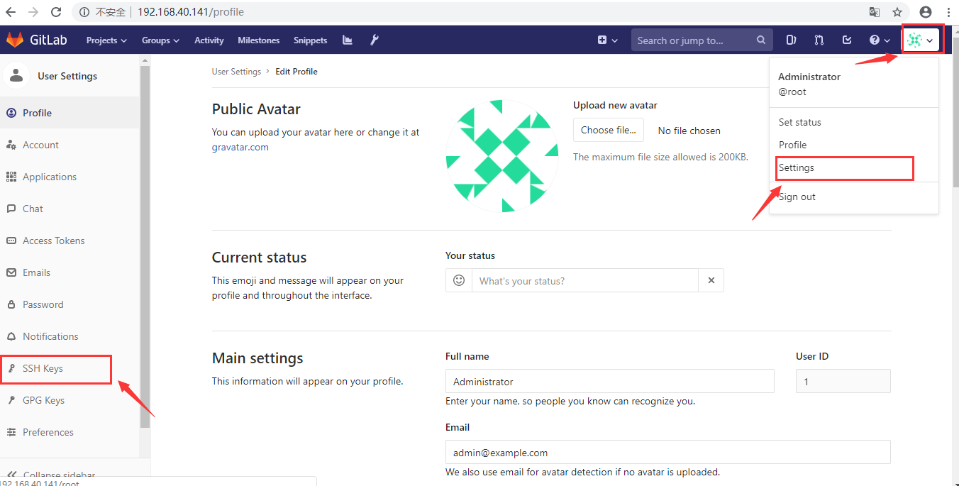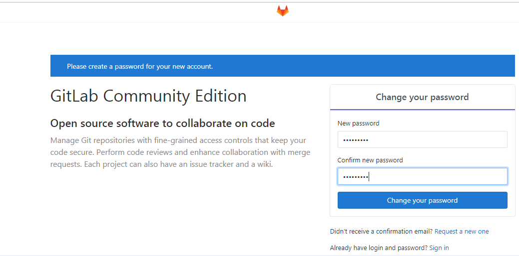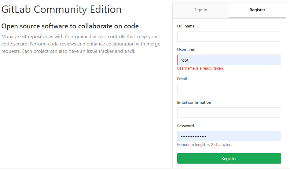 注意:启动gitlab时,会启动很多端口,因此gitlab主机尽量不要安装其他服务,避免端口冲突,gitlab默认端口为80端口.