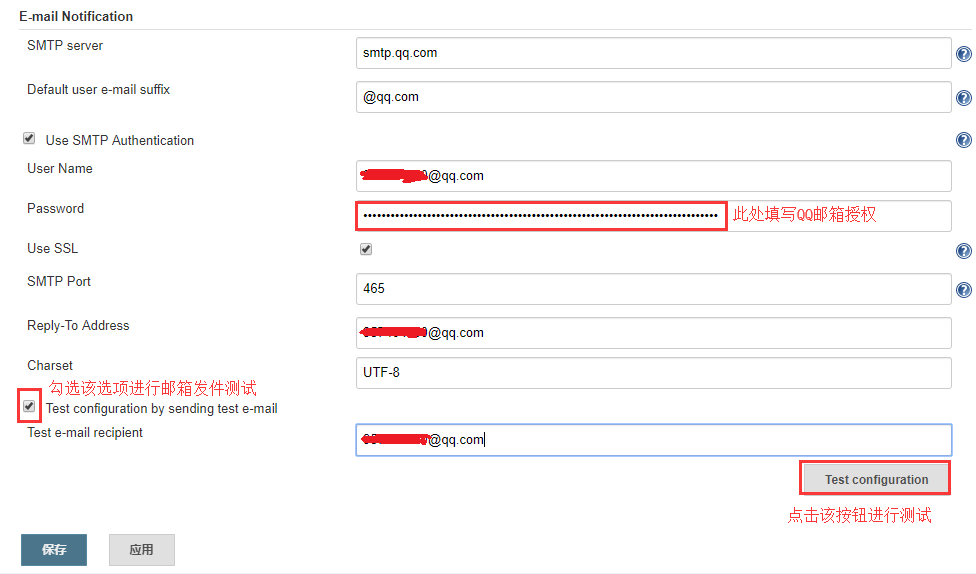 注意:上面的邮箱和密码已XXX代替,可配置为自己的邮箱并设置密码