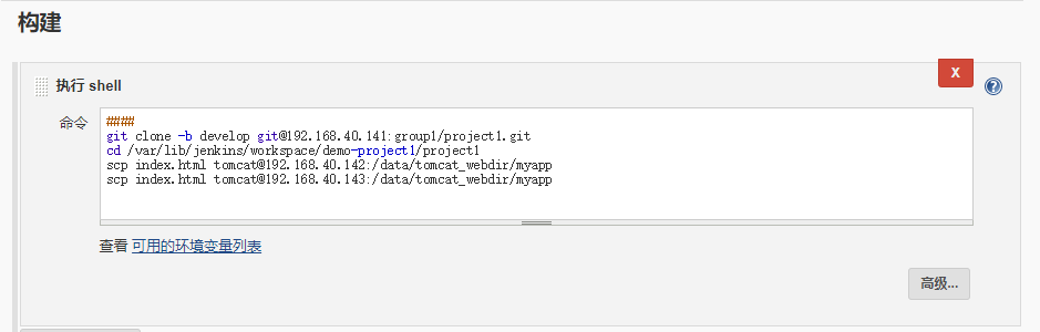 3、在jenkins上通过脚本自动化clone代码到本地,然后再复制到后端web服务器