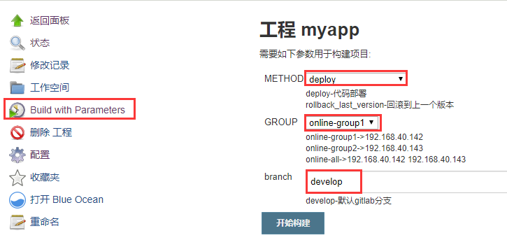 • 在jenkins的web界面myapp项目中点击Build with Paremetes构建项目对192.168.40.142进行测试